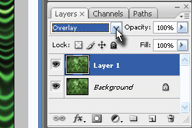 Dupliciranemu layerju določite senčenje na Overlay (glej sliko). |