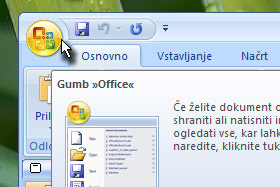 Odprite Microsoft PowerPoint in kliknite na gumb Office...