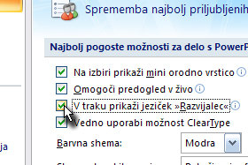 V novem oknu označite V traku prikaži jeziček "Razvijalec" in potrdite na gumb V redu.