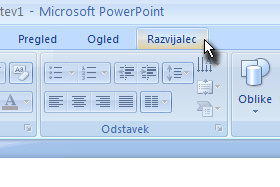 Prikaže se nov zavihek Razvijalec, na katerega tudi kliknite. |
