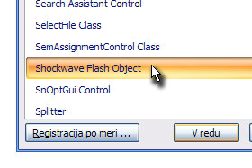 Odpre se novo okno, kjer poiščete in označite Showckwave Flash Object in potrdite na gumb V redu.
