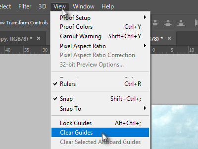 ![]() Kliknite zgoraj na View in izberte Clear Guides. |