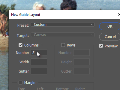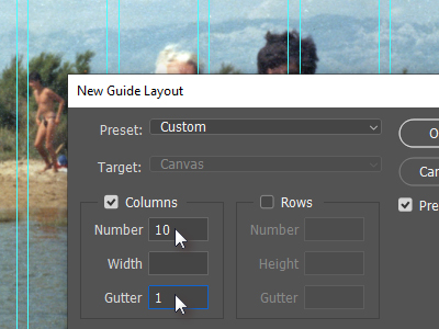 ![]() Kliknite sedaj zgoraj na View in izberite New Guide Layout... V novem oknu kliknite v polje Numbers pod Columns (stolpci). |