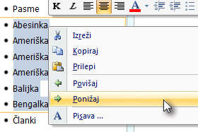 Označim elemente, ki sem jih predhodno napisal, naredim desni klik in izberem možnost Ponižaj.