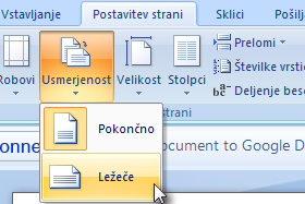 Kliknite na Postavitev strani, Usmerjenost in izberite Ležeče.