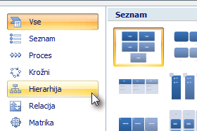 V novem oknu izberite možnost Hierarhija.