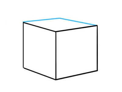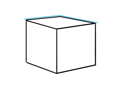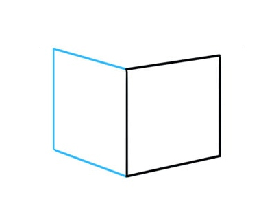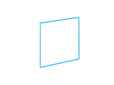 ![]() Vse poteze najprej narišite z rahlim pritiskom svinčnika, na koncu pa vse skupaj dobro izpostavite z barvico ali drugim pisalom. Najprej narišite kvadrat v poševni obliki. |