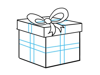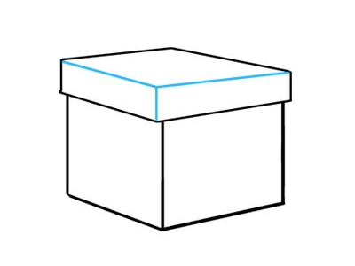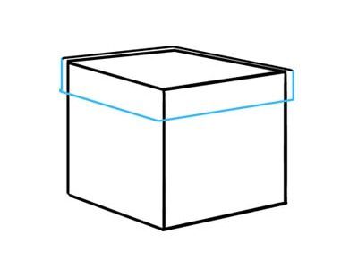 ![]() Pri vrhnjem delu dodajte še eno stranico, ki gleda malo čez zgornjo površino. Ta del bo predstavljal pokrov darila. |