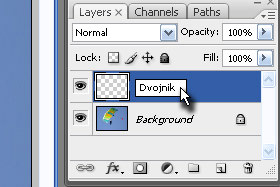 Kliknite dvakrat na novo ustvarjeni layer in ga preimenujte v Dvojnik.
