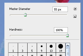 Kliknite z desnim miškinim gumbom na dokument in določite Hardness na 100% in poljubno velik Master Diamter (velikost radirke).
