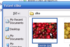 Odpre se okno z raziskovalcem, kjer označite sliko, ki ji v grafikon želite vstaviti in nato potrdite na gumb Vstavi.