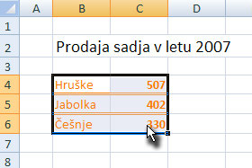 Označite z miško sedaj vse prepisane podatke (glej sliko).