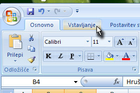 Kliknite na zavihek Vstavljanje.