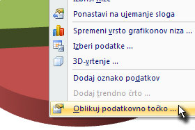 Kliknite na označeni del z desnim miškinim gumbom in izberite Oblikuj podatkovno točko...