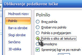 Na levi strani kliknite na Polnilo in nato označite Polnilo s sliko ali teksturo. |