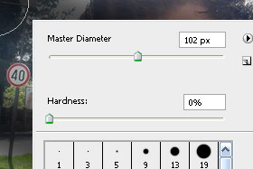 Kliknite z desnim miškinim gumbom na dokument in izberite poljubno velik Master Diamater in Hardness na 0% (glej sliko).
