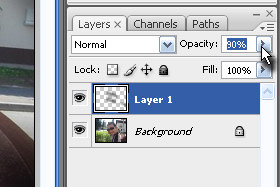 Določite layerju Opacity na okoli 90% (glej sliko).