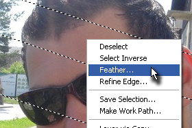 Kliknite na označeno z desnim miškinim gumbom in izberite Feather...