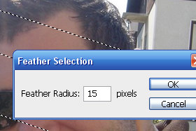 V novem oknu vpišite Feather Radius okoli 15 pixels in potrdite na gumb OK.