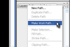 Pri paleti z layerji kliknite na zavihek Paths in nato na malo puščico navzdol (glej sliko)...