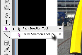 Držite z miško na orodju Path Selection tool (bližnjica je tipka A) toliko časa, dokler se ne prikažejo ostala orodja. |