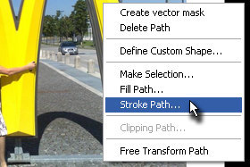 Kliknite z desnim miškinim gumbom na dokument in izebrite Stroke Path...