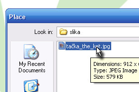 V oknu z raziskovalcem označite sliko, ki jo želite obdelati in potrdite na gumb Place. |
