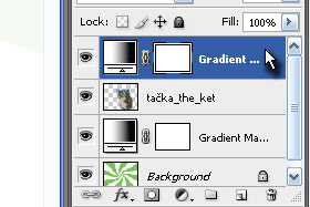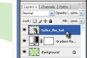 Nato pa ga v paleti z layerji povlecite na vrh palete layerjev (glej sliko). Lahko tudi kliknite na predogledno sličico preliva in nastavite opcijo Reverse. |