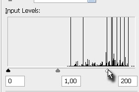 Potem pa pritisnite tipki CTRL + L in v oknu Levels povlecite beli drsnik malo v levo (glej sliko). Potrdite na gumb OK. |