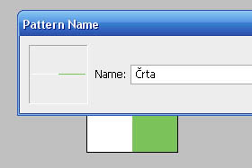 Kliknite zgoraj na Edit in izberite Define Pattern. V novem oknu v polje Name vpišite Črta in potrdite na gumb OK. Selekcija mora biti izbrisana, drugače bo vzorec ustvarjen samo na podlagi označenega in ne celotnega dokumenta. |
