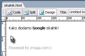 Kliknite z miško na polje, kjer želite vstaviti Google iskalnik.
