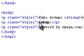 Vstavite naslednjo HTML kodo: