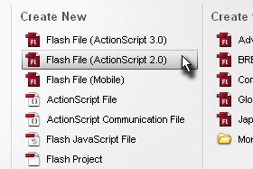 Ustvarite nov ActionSctipt 2.0 dokument.