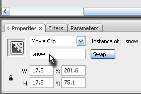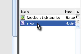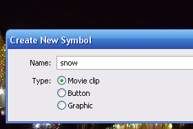 V novem oknu v polje Name vpišite snow in označite Movie clip. Nato pa kliknite na gumb Advanced. |