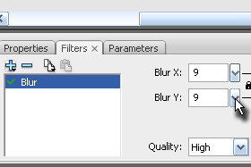 Nato pa določite Blur X in Blur Y na okoli 9 ter določite Quality High. |