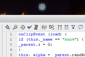 onClipEvent (load) { if (this._name == "snow") { _parent.i = 0; } this._alpha = _parent.randRange(80, 100); //Alpha Transparency of snow this._width = _parent.randRange(5, 10); //Snow width this._height = this._width; //Keep round shaped snow this._x = _parent.randRange(-100, _parent.mw+100); this._y = _parent.randRange(0, -50); speed = _parent.randRange(2, 5); //Folling speed. } onClipEvent (enterFrame) { this._y += speed; this._x += _parent.interval-3; if (this._y>_parent.mh+20) { this.removeMovieClip(); } |