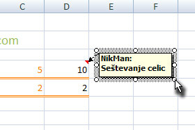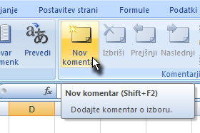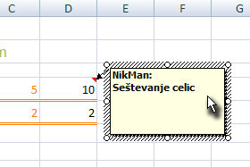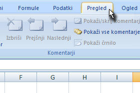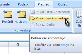 Kliknite ponovno na neko celico, da se komentarji skrijejo.