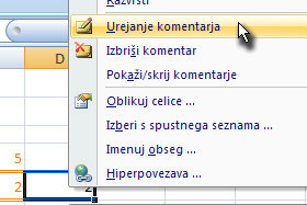 Lahko pa tudi kliknete z desnim miškinim gumbom na celico z komentarjem in uporabite možnost Urejanje komentarja ali pa ga izbrišete z izbiro Izbriši komentar.