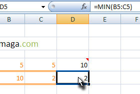Jaz imam dve celici, kjer sem uporabil dve različni formuli, ena za seštevanje levih celic, drugo pa za prikaz najnižje vrednosti.