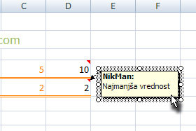 Vpišite poljuben komentar, ki bo predstavljal označeno celico. Če želite tekst odebeliti, ga označite in pritisnite tipki CTRL + B. |