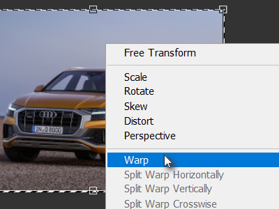 ![]() Sedaj z desnim miškinim gumbom kliknite na dokument in izberite Warp. |