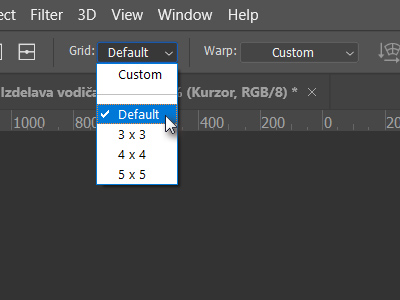 ![]() V orodni vrstici lahko sedaj mrežo (Grid) nastavljate poljubno (prej je bila možna nastavitev le 3 x 3). Pustite privzeto na Default (kar predstavlja 1 x 1). |