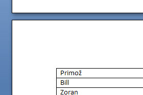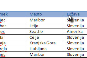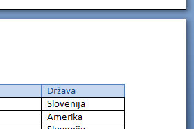 Ustvarite ali odprite dokument, kjer je ustvarjena tabela z podatki, ki imajo v vrhnjih tabelah naslove (glej sliko).