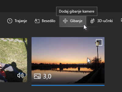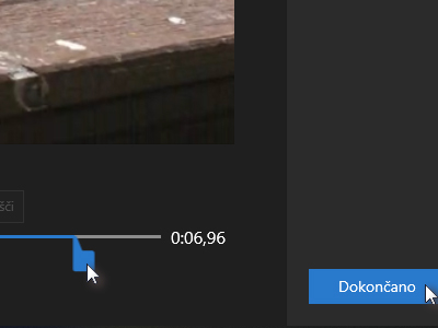 ![]() In nato storite tudi na koncu posnetka, kjer želite da se konča. To pride prav, ko imate videoposnetek dolg 90 sekund, radi pa bi pokazali le 20 sekund. Kliknite na gumb Dokončano. |
