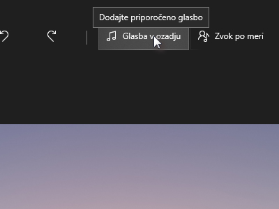 ![]() Dodali bomo še glasbeno spremljavo tako, da kliknite zgoraj na Glasba v ozadju. |