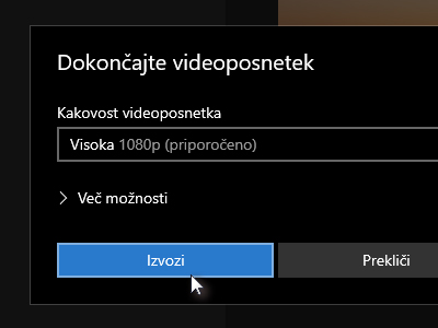![]() V novem oknu določite visoko kakovost videoposnetka ter kliknite na gumb Izvozi. |