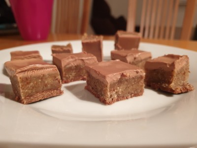 Čez to maso nato dolijte še pripravljeno maso z mletimi mandlji, katero prav tako enakomerno razdelite in poravnate. V naslednjem koraku bomo pripravili še čokolado, katero bomo prelili čez obe masi. Za zdaj pa dajte pekač v hladilnik. |