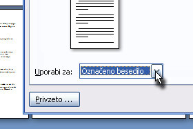 ...in Uporabi za preko izbirnika določite Označeno besedilo.