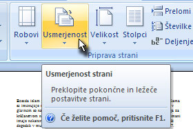 ..., v olju Priprava strani kliknite na Usmerjenost strani...
