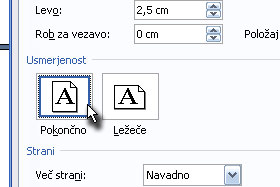 odpre se novo okno, kjer pri polju kliknite na gumb Pokončno...